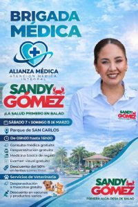 Gracias a la coordinación de nuestra Alcaldesa Sandy Gómez y Alianza Médica atención integral. Contaremos con los servicios de: