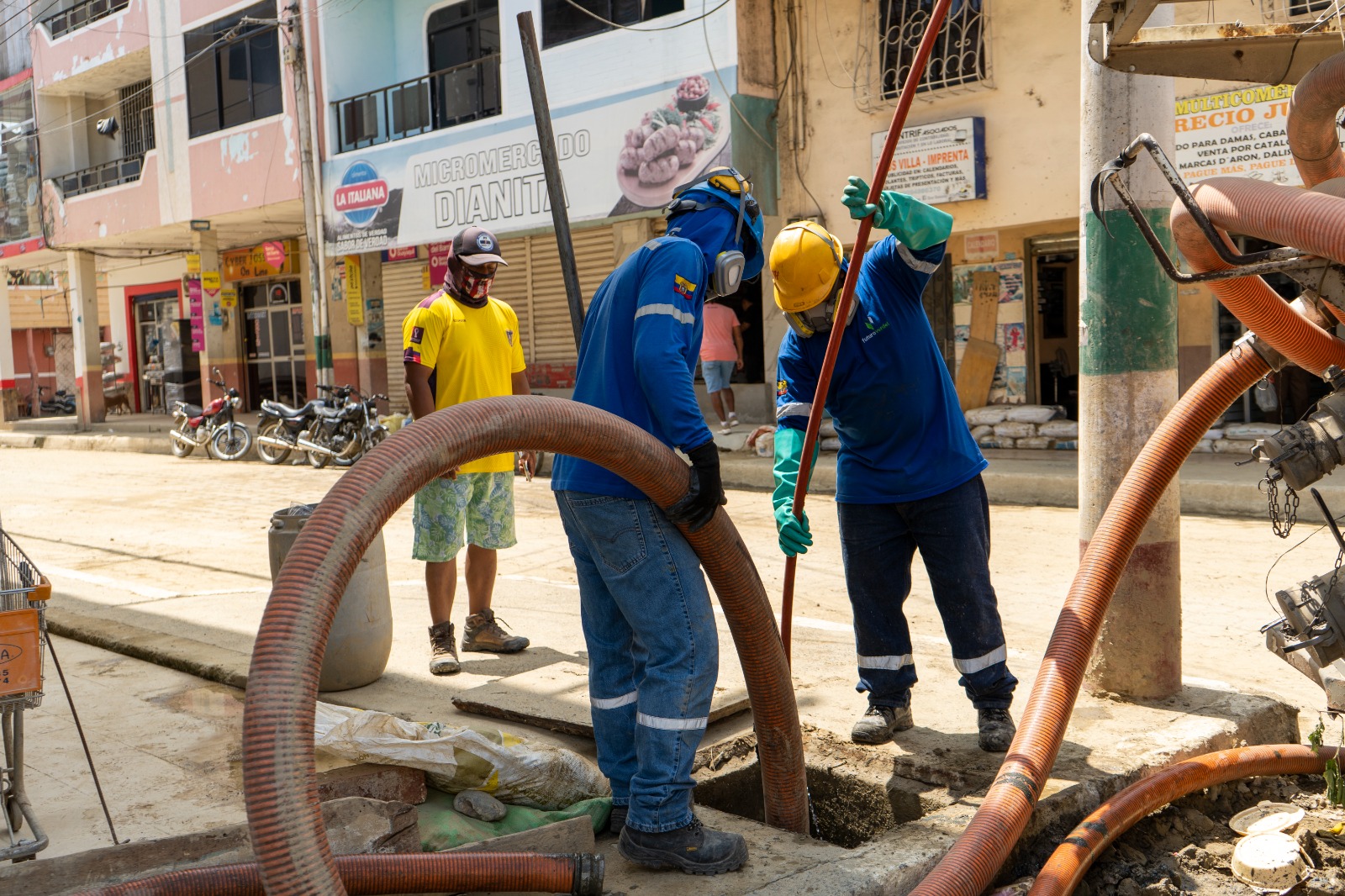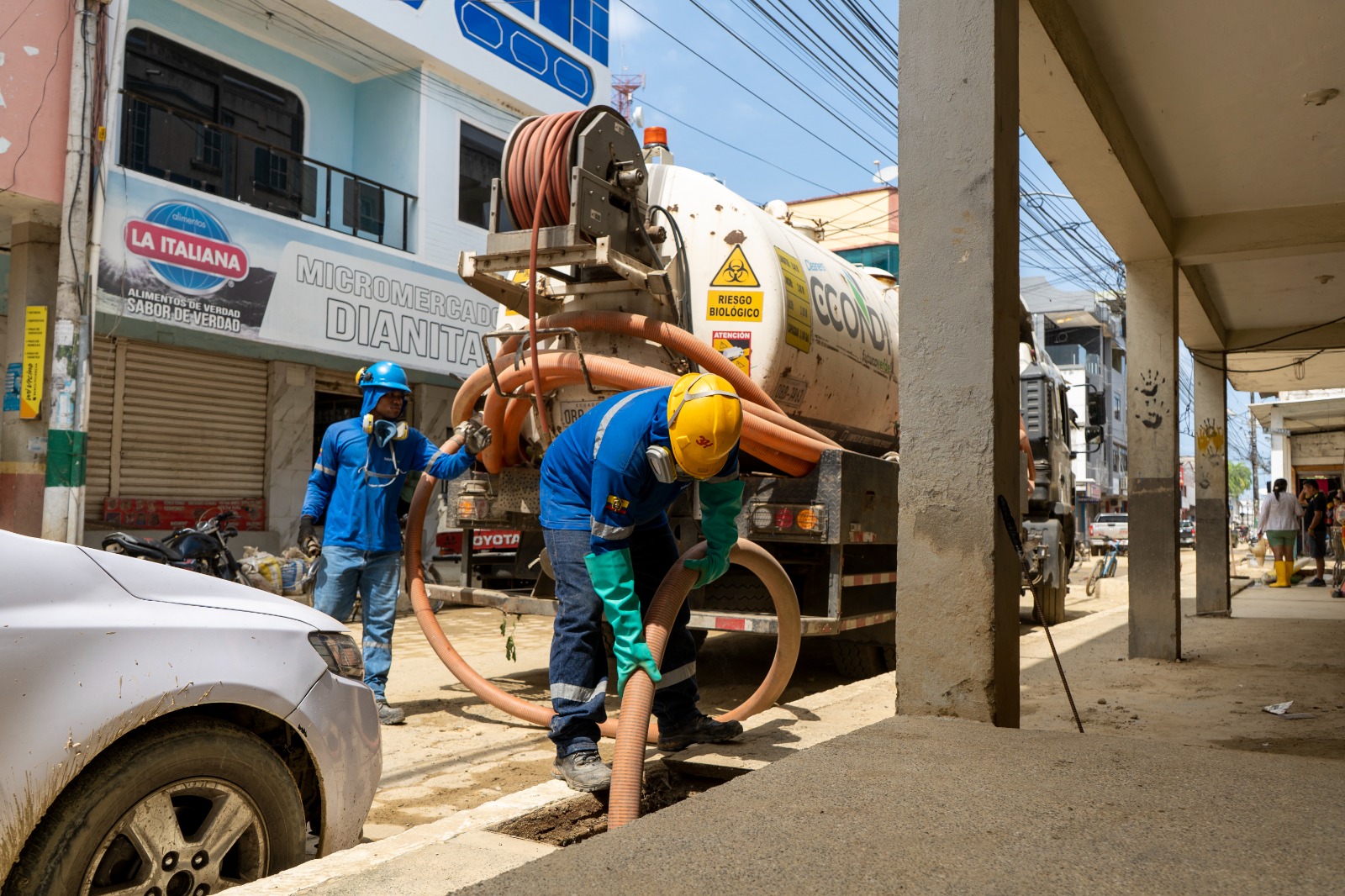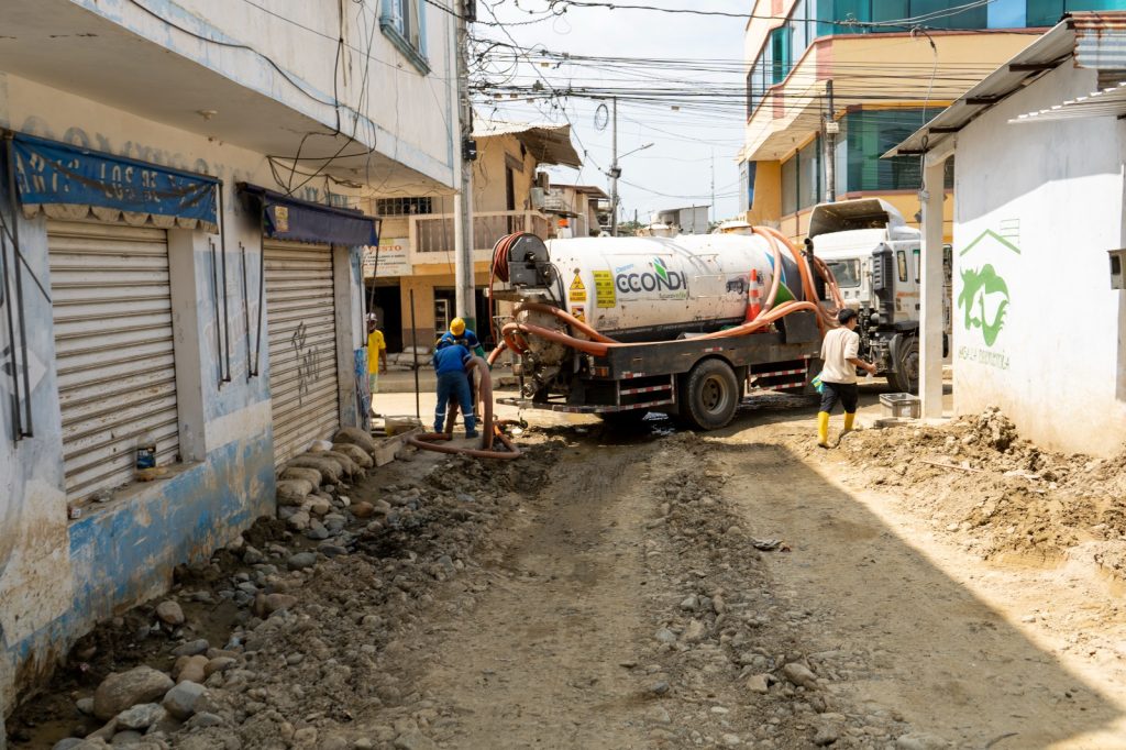 Debido a la inundación , varios tramos se obstruyeron por la acumulación de sedimentos y desechos, generando también malos olores. Por ello, estamos interviniendo de manera oportuna en la limpieza del alcantarillado con el apoyo del Hidrocleaner para restablecer el correcto drenaje y mejorar las condiciones sanitarias de nuestro cantón💧🚛