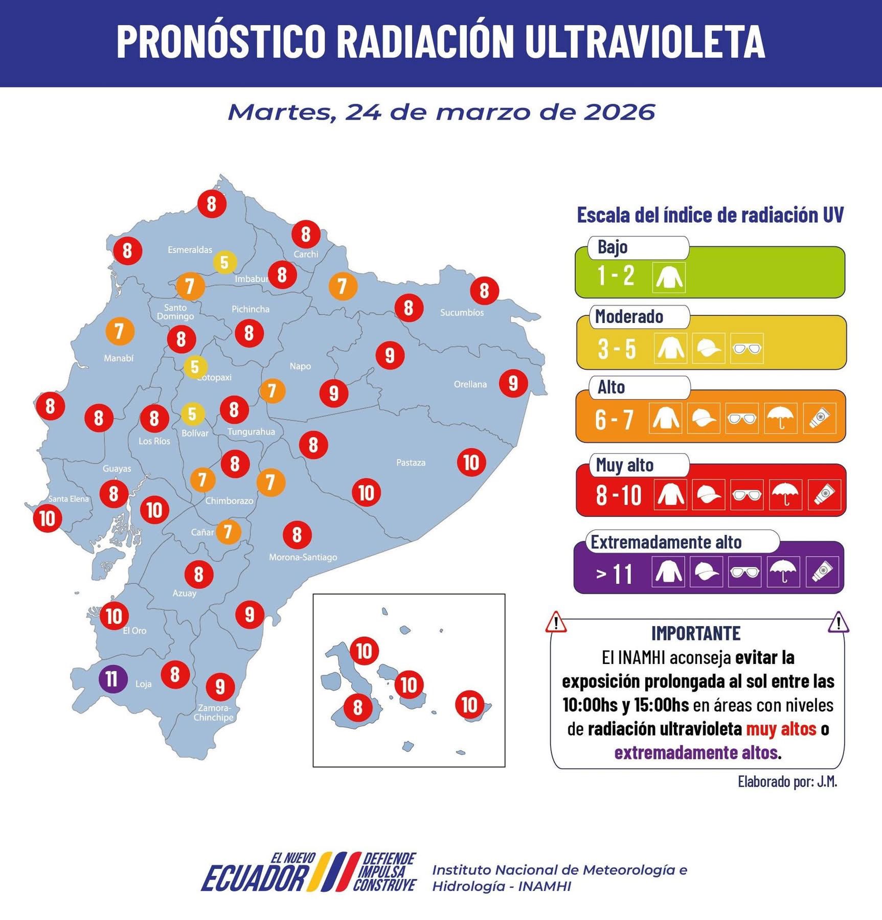 🚨 Evita el sol entre 10h00 y 15h00 y usa protección.