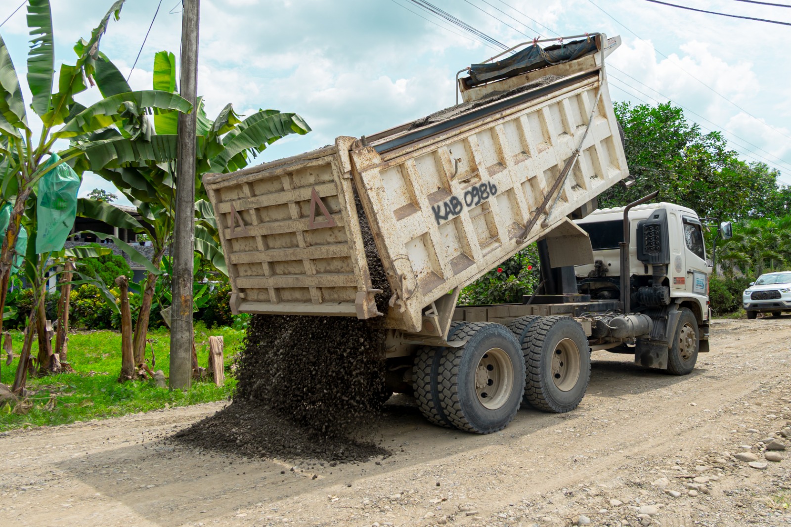 Avanzamos con la colocación de base granular como paso previo para la ejecución del doble riego asfáltico en la vía que conecta los recintos Voluntad de Dios, Las Palmas, San Juan y el sector El Progreso 🚧