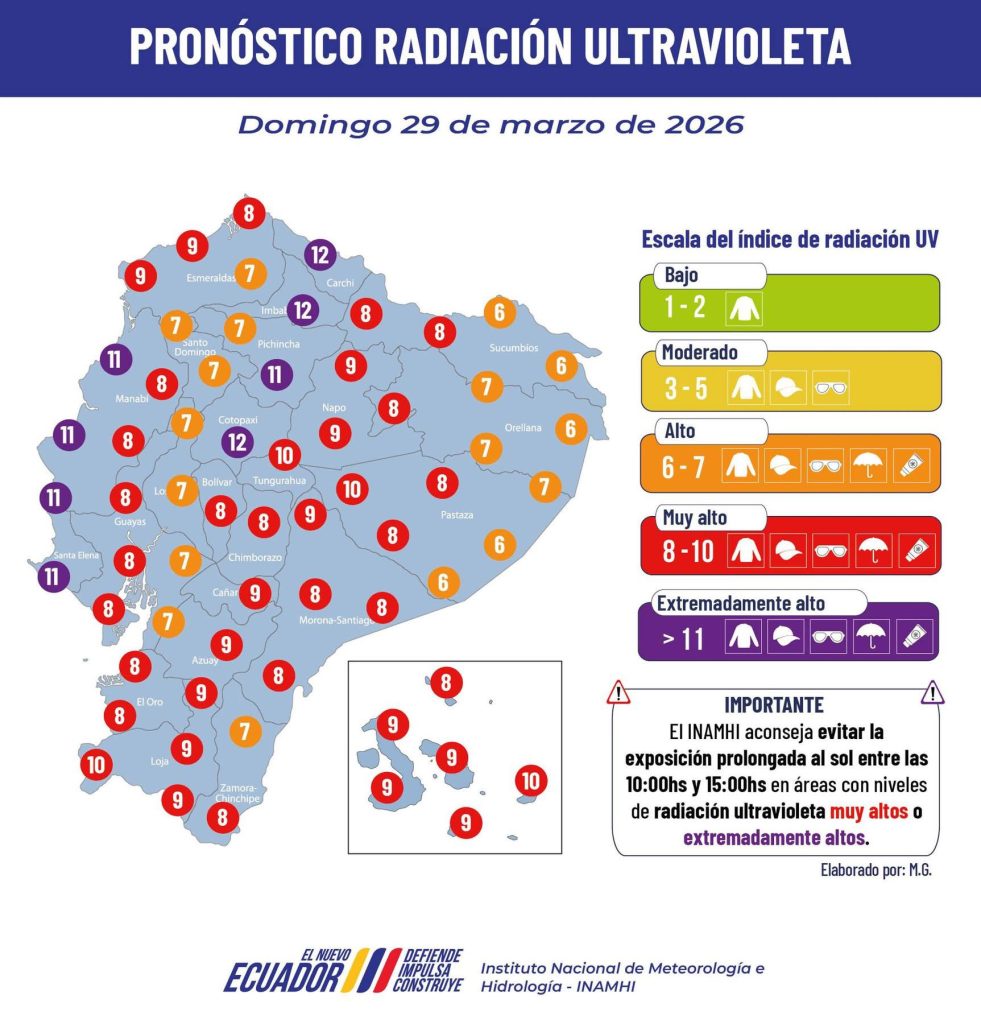 ☀️ Radiación UV muy alta a extremadamente alta, evita exposición prolongada al sol.
